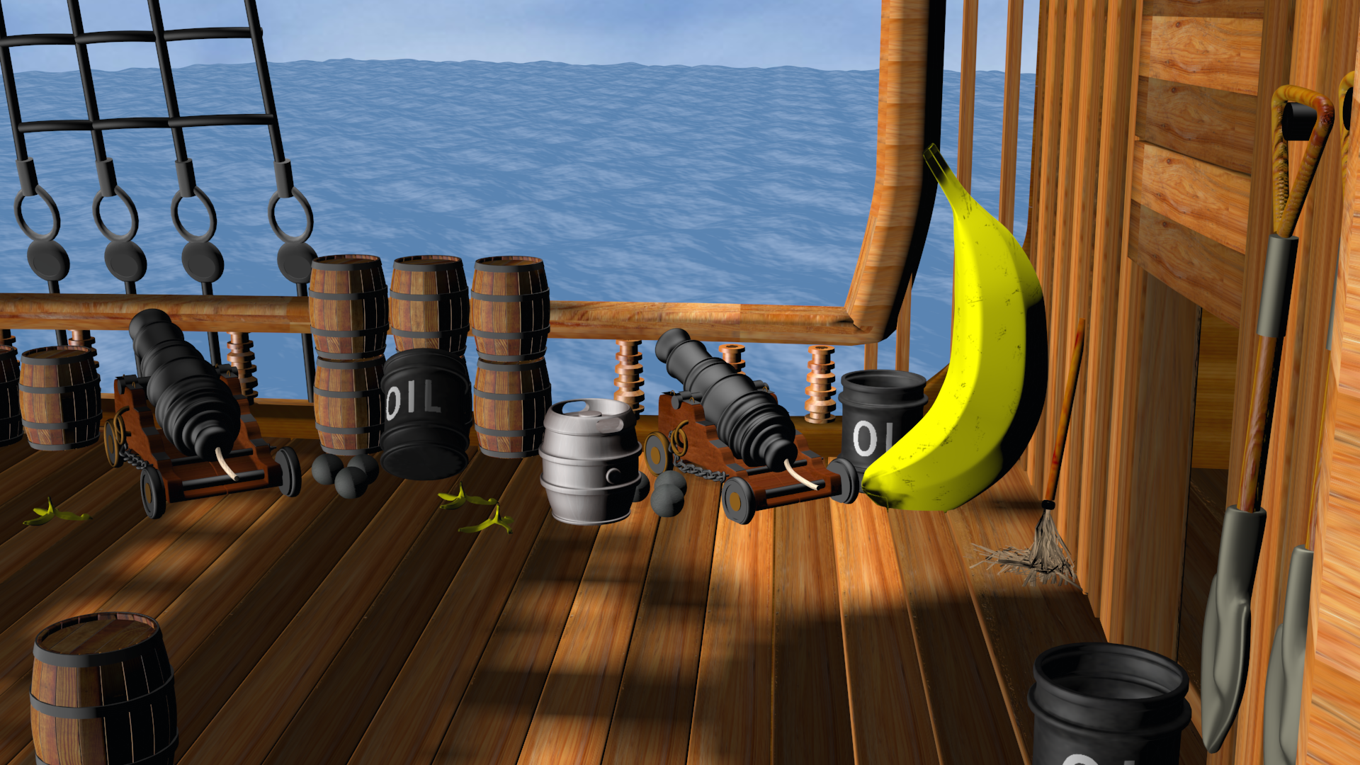 Are you planning on modeling the captain's quarters? I think it would also be sort of cool to show the crew down in the ship, since you never really go inside the ships in any of the games (you go in one ship with Chunky in DK64).