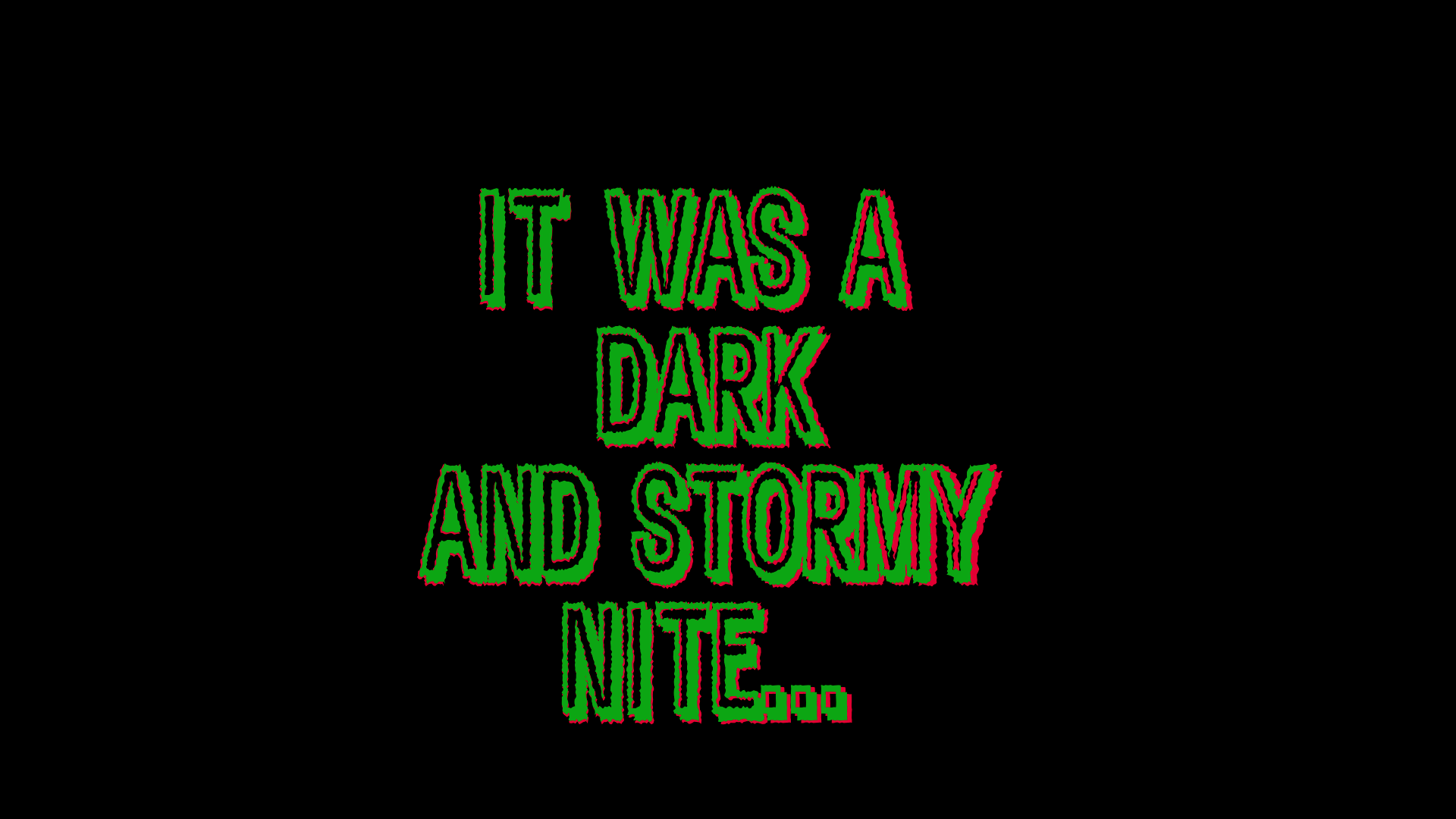"It Was A Dark And Stormy Night", is a nice callback to the original story's lead-in, but the relevant dialogue in the instruction booklet reads "IT WAS A DARK AND STORMY NITE...", so perhaps that odd spelling ought to be honoured, the ellipsis should be included, and an all-caps approach is best. Also, having the text positioned in the centre (up a bit) would probably look better, too.