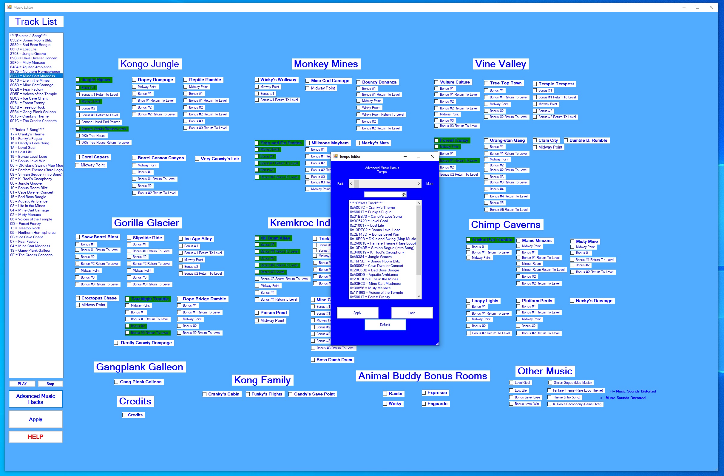 And various other simple hacks such as invincibility, edit the physics of the Kongs, etc