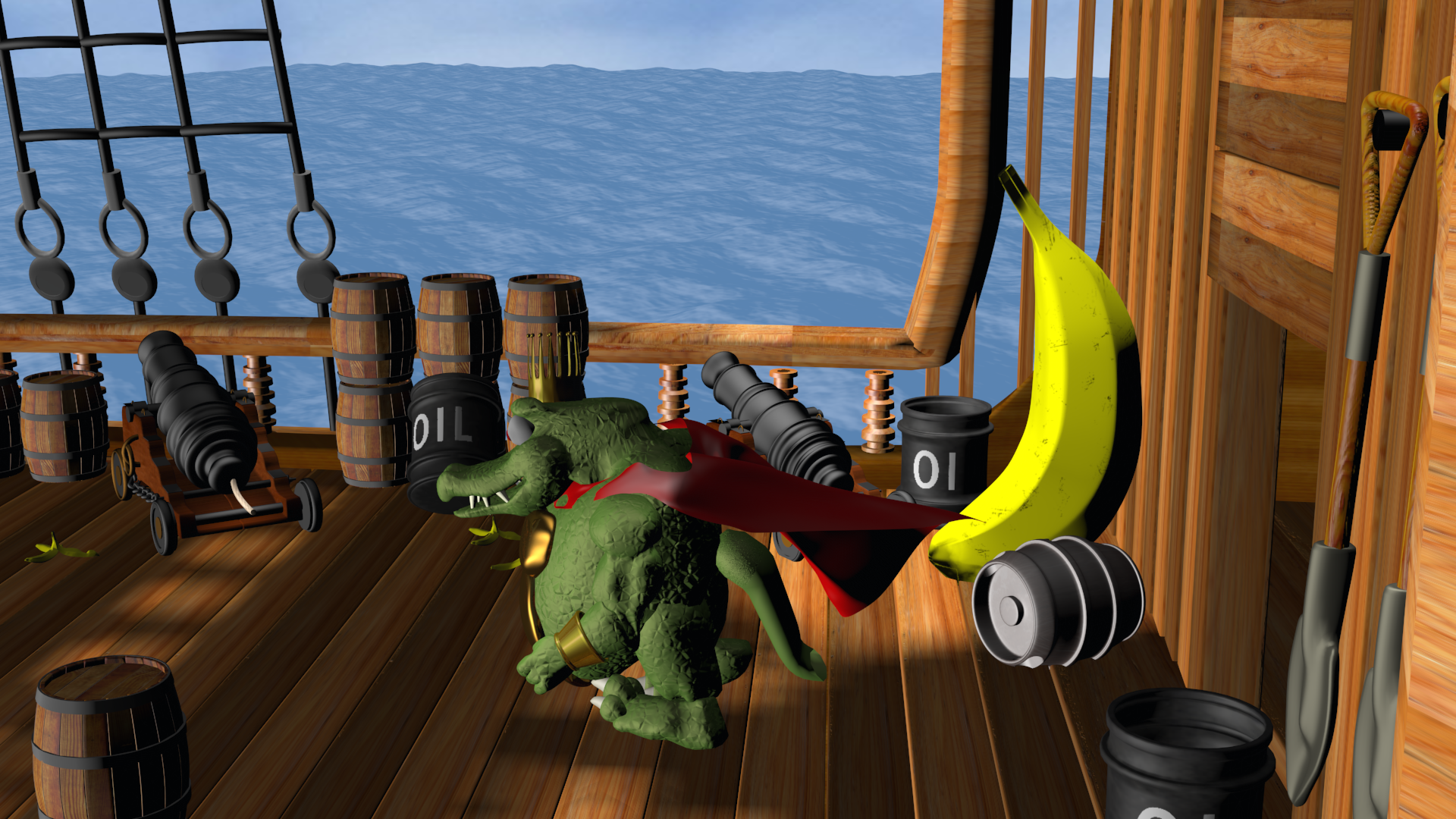 sonosublime wrote:Instead of giving orders to steal the banana hoard from the captain's cabin (kind of redundant), I was instead going to have K. Rool giving orders from the cabin when the Kongs attack the ship. I was thinking of something like this: DK and Diddy get Squawks to fly them out to the ship. Diddy breaks open a crate which was holding Rambi prisoner (illegal exotic animals trade?) and wreaks havoc. DK defeats K. Rool and he agrees to leave the island.