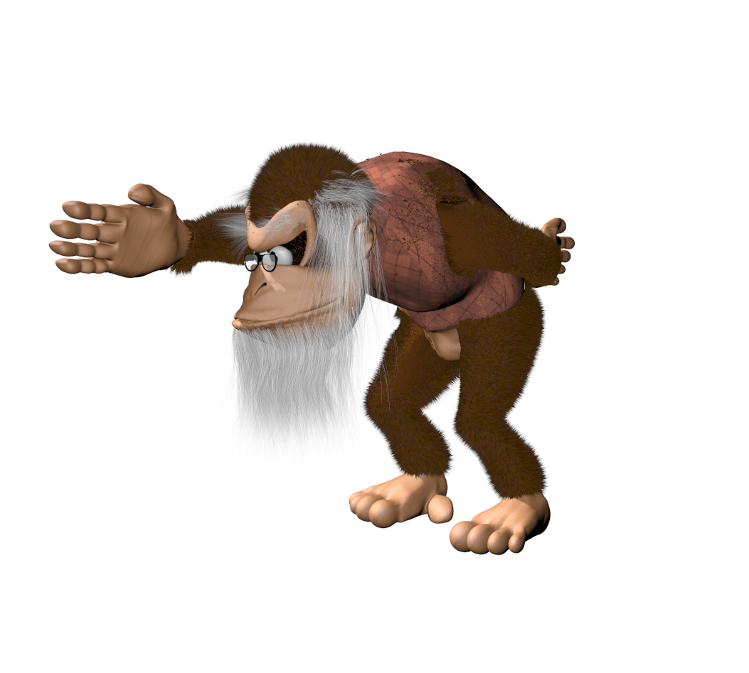 Here is the same scene with a different pose and improved fur and fur lighting. I think DK's head should show more. I think a few different camera angles during the animation would help, so you see his face.