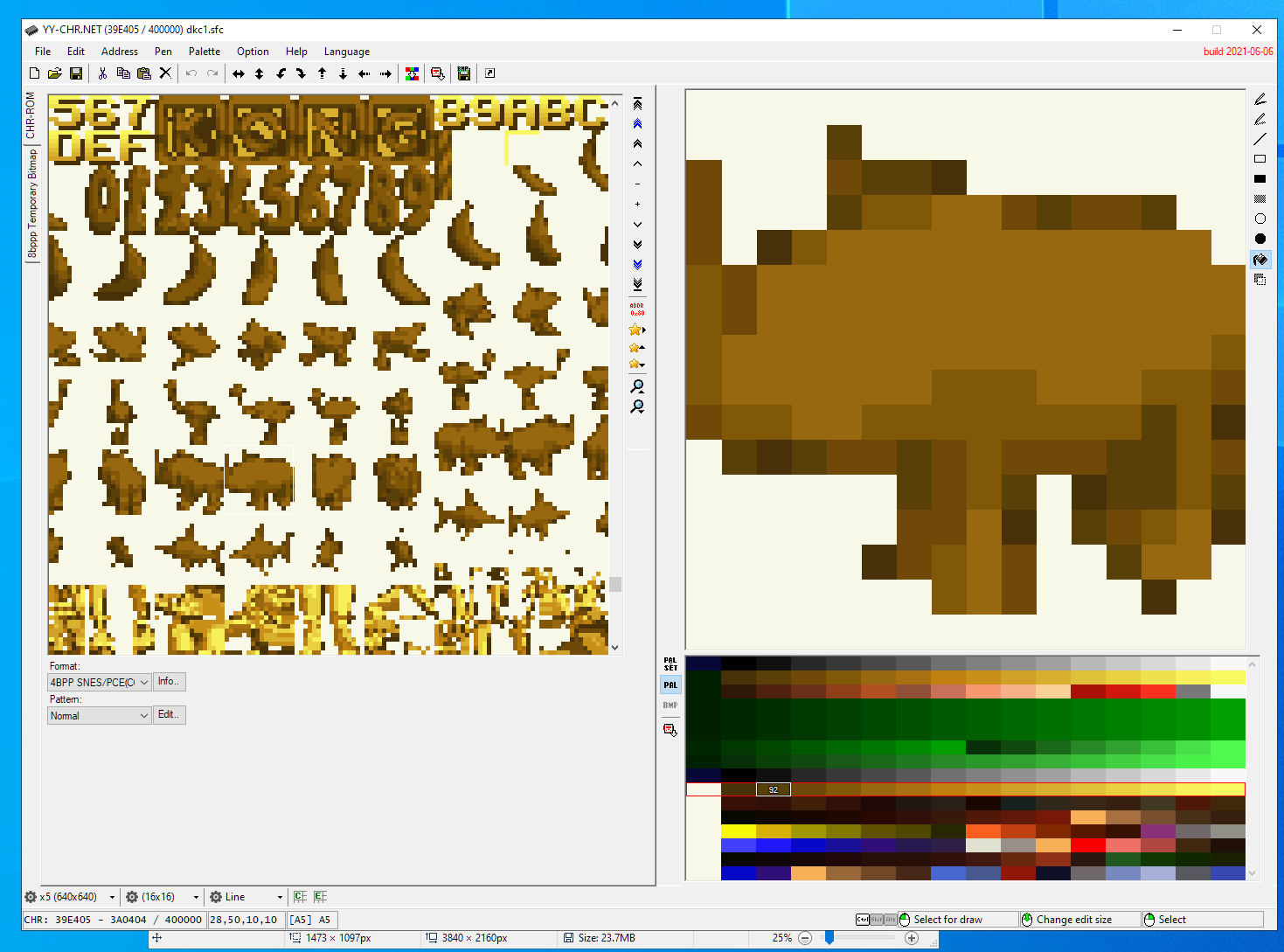 So... I know were the bananas are located But I don't know how to use the palette editor to find them... I just get gibberish. I tried increasing / decreasing the bits. I loaded a save state as well and scrolled through the ROM.